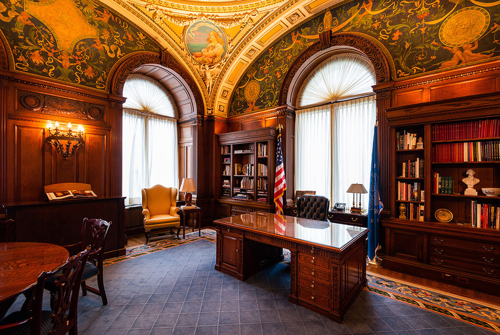 ส่วนนี้เป็นห้องทำงานของคนที่ชื่อเหมือนตึกคือ Thomas Jefferson ที่เป็นหนึ่งในผู้ก่อตั้งประเทศสหรัฐอเมริกา ประธานาธิบดีสหรัฐคนที่สาม เกิดมาในยุคที่อเมริกายังเป็นอาณานิคมของอังกฤษ และเป็นสายแบ่งแยกจากการปกครองของราชวงศ์อังกฤษ ออฟฟิศเว่อวังมาก
