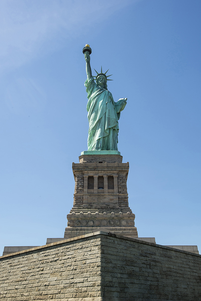 มาแล้วๆ ได้เห็นกันใกล้ๆ เรือจะวนไปจอดด้านหลังเทพีเสรีภาพและเราสามารถเดินเล่นบนเกาะได้ตามใจชอบไม่มีเวลาจำกัด เรือนี่เราก็ไม่ต้องกลับลำเดิมก็ได้ครับ แต่ต้องรู้ว่าสายไหนกลับ Manhattan หรือไป New Jersey ขึ้นผิดไม่ต้องกลับบ้านกันเลย